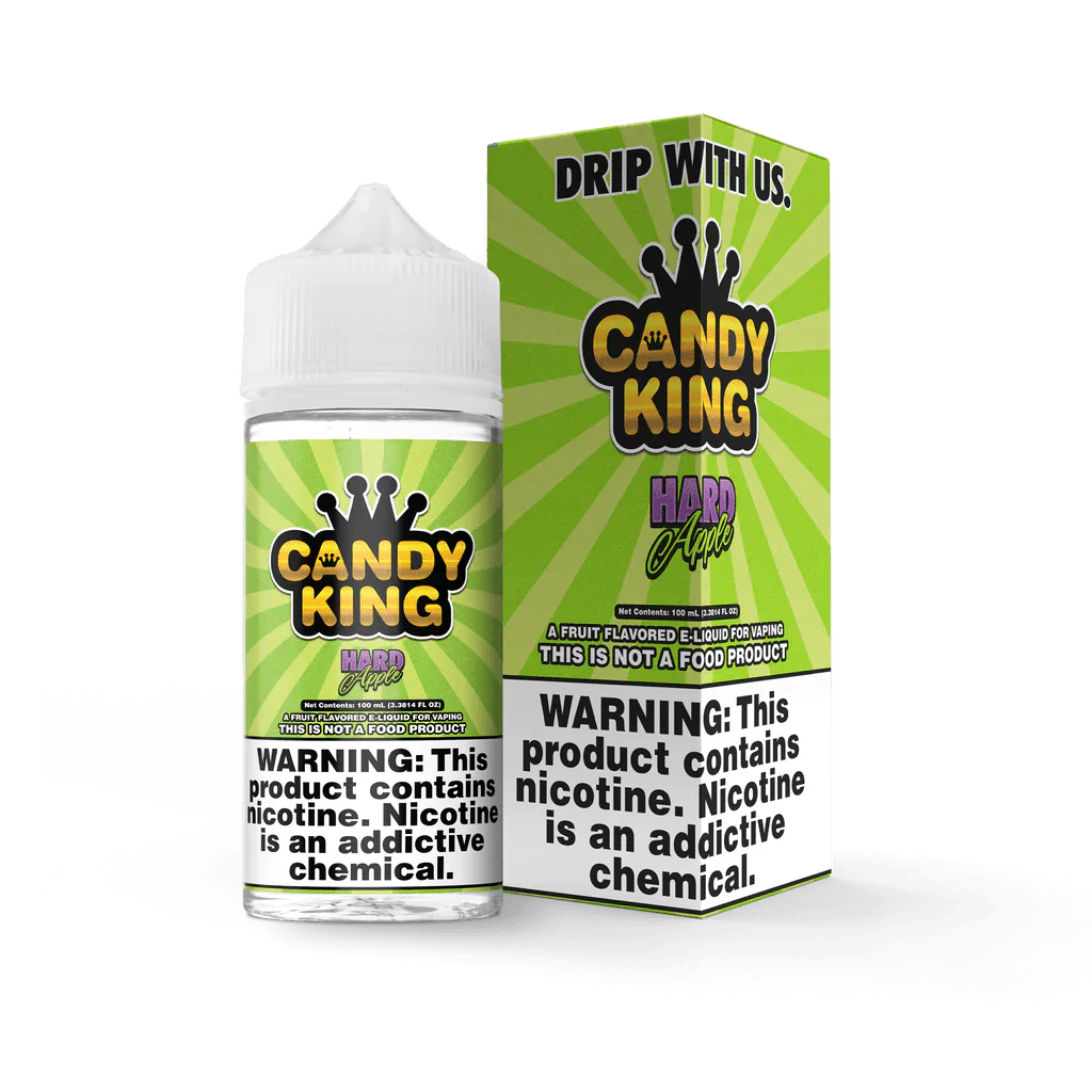 Indulge in the crisp and tangy taste of Hard Apple by Candy King, a vape juice that captures the essence of sour green apples in every puff.
