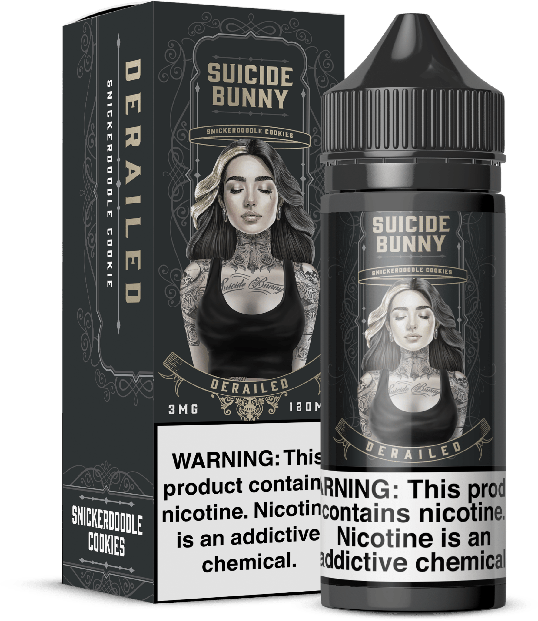 Take a journey of sensory delight with "Derailed" by Suicide Bunny, an exquisite e-liquid creation that transcends the ordinary. As you inhale, imagine stepping into a cozy kitchen, where the air is thick with the intoxicating aroma of freshly baked cookies straight out of the oven. The warm, buttery notes envelop you, conjuring memories of childhood delights and comforting moments shared with loved ones.