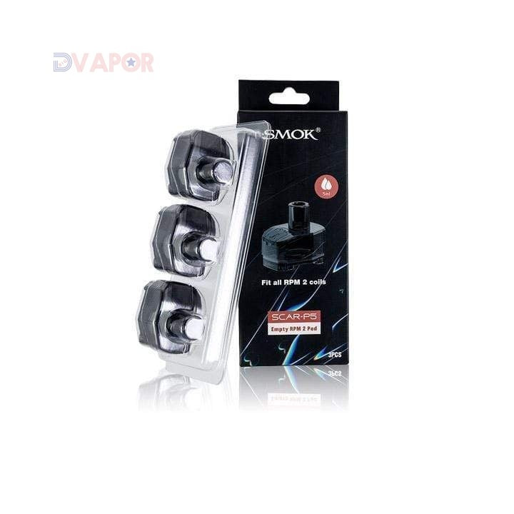 These Scar P5 Replacement Pods, by Smok, are specifically designed for use with the Scar P5 Pod Mod.  Each pack of pods contains 3 pods and is available in traditional RPM, using all RPM Coils, or RPM 2 for use with RPM 2 Coils.  Each pod holds approximately 5.5ml of liquid and does not include coils.  Each pod is guaranteed authentic and comes with the Smok Holograph and scratch off verification code on the box.